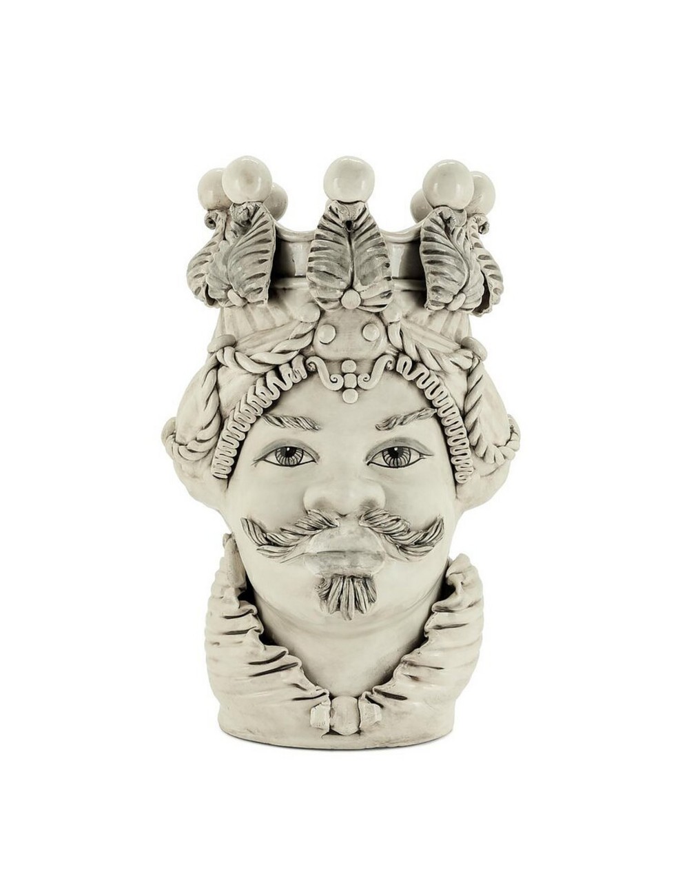 Sicilian traditional moor-head shaped ceramic vase, totally hand made and hand painted by the original artisanal producer from Caltagirone - Sicily, restyled and exclusively distributed by Abhika.