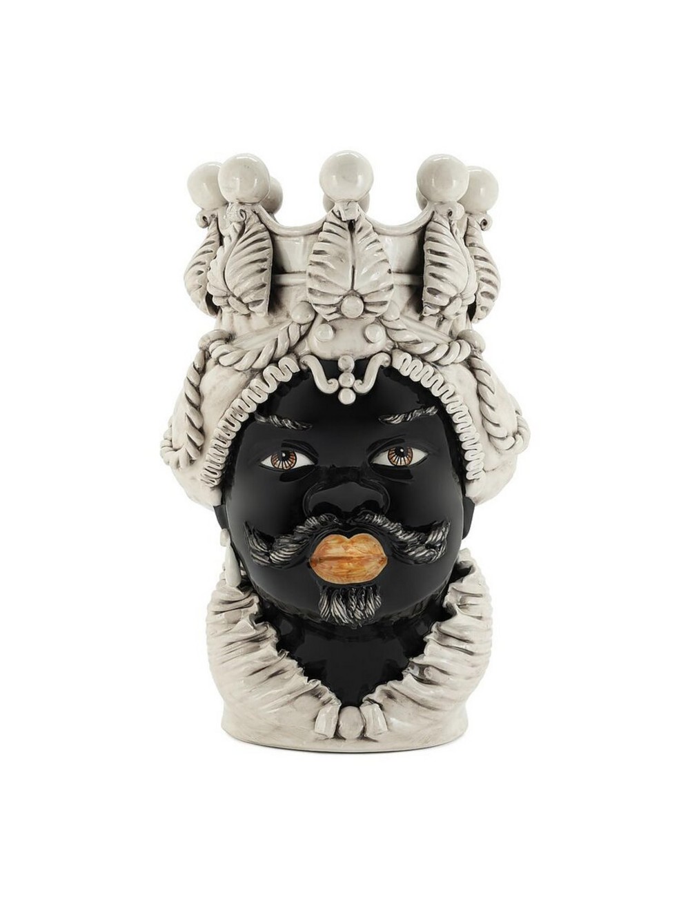 Sicilian traditional moor-head shaped ceramic vase, totally hand made and hand painted by the original artisanal producer from Caltagirone - Sicily, restyled and exclusively distributed by Abhika.