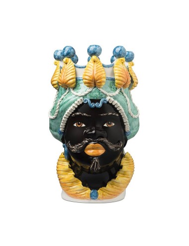Sicilian traditional moor-head shaped ceramic vase, totally hand made and hand painted by the original artisanal producer from Caltagirone - Sicily, restyled and exclusively distributed by Abhika.