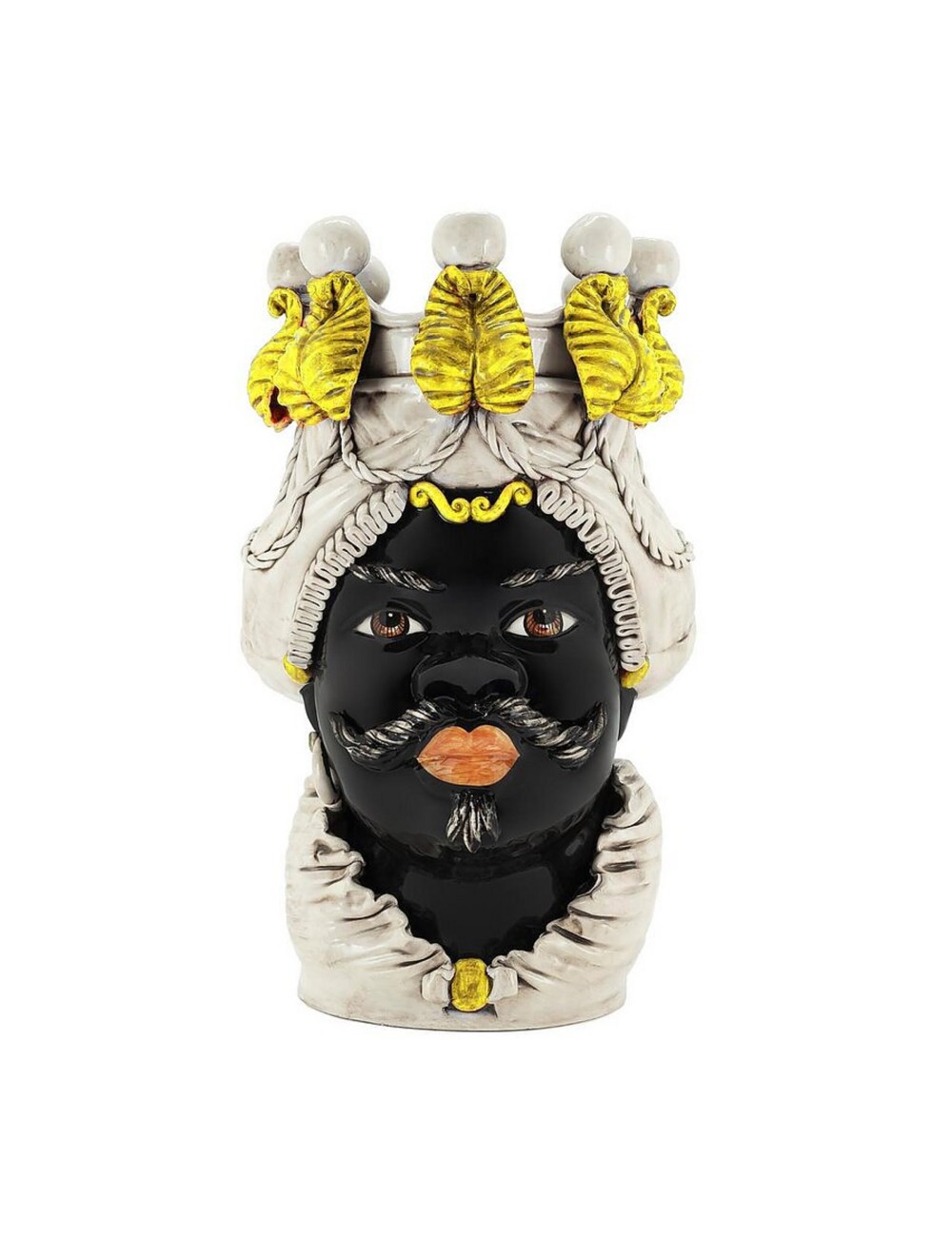 Sicilian traditional moor-head shaped ceramic vase, totally hand made and hand painted by the original artisanal producer from Caltagirone - Sicily, restyled and exclusively distributed by Abhika.