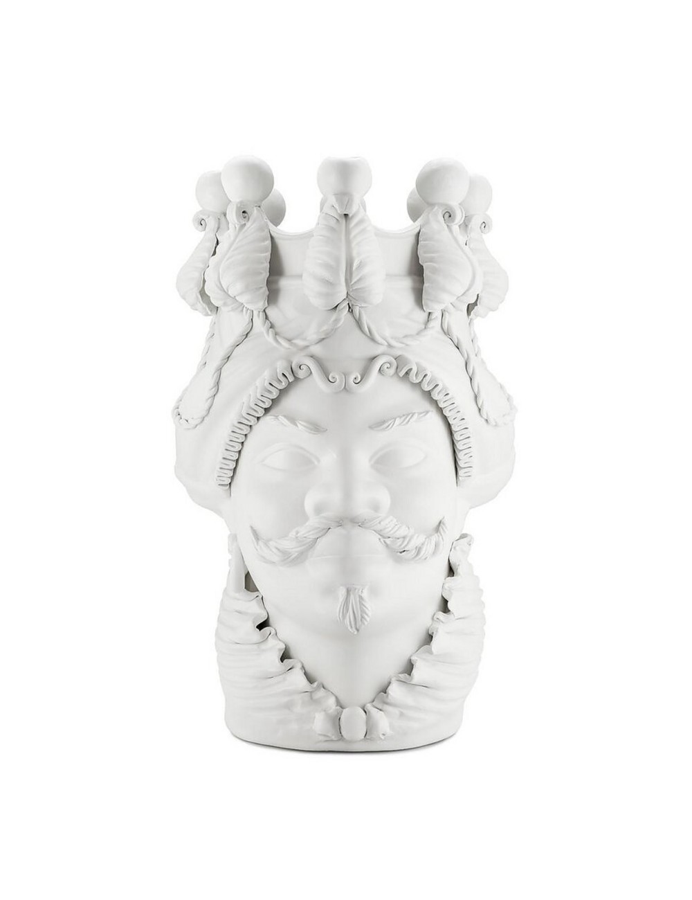 Sicilian traditional moor-head shaped ceramic vase, totally hand made and hand painted by the original artisanal producer from Caltagirone - Sicily, restyled and exclusively distributed by Abhika.