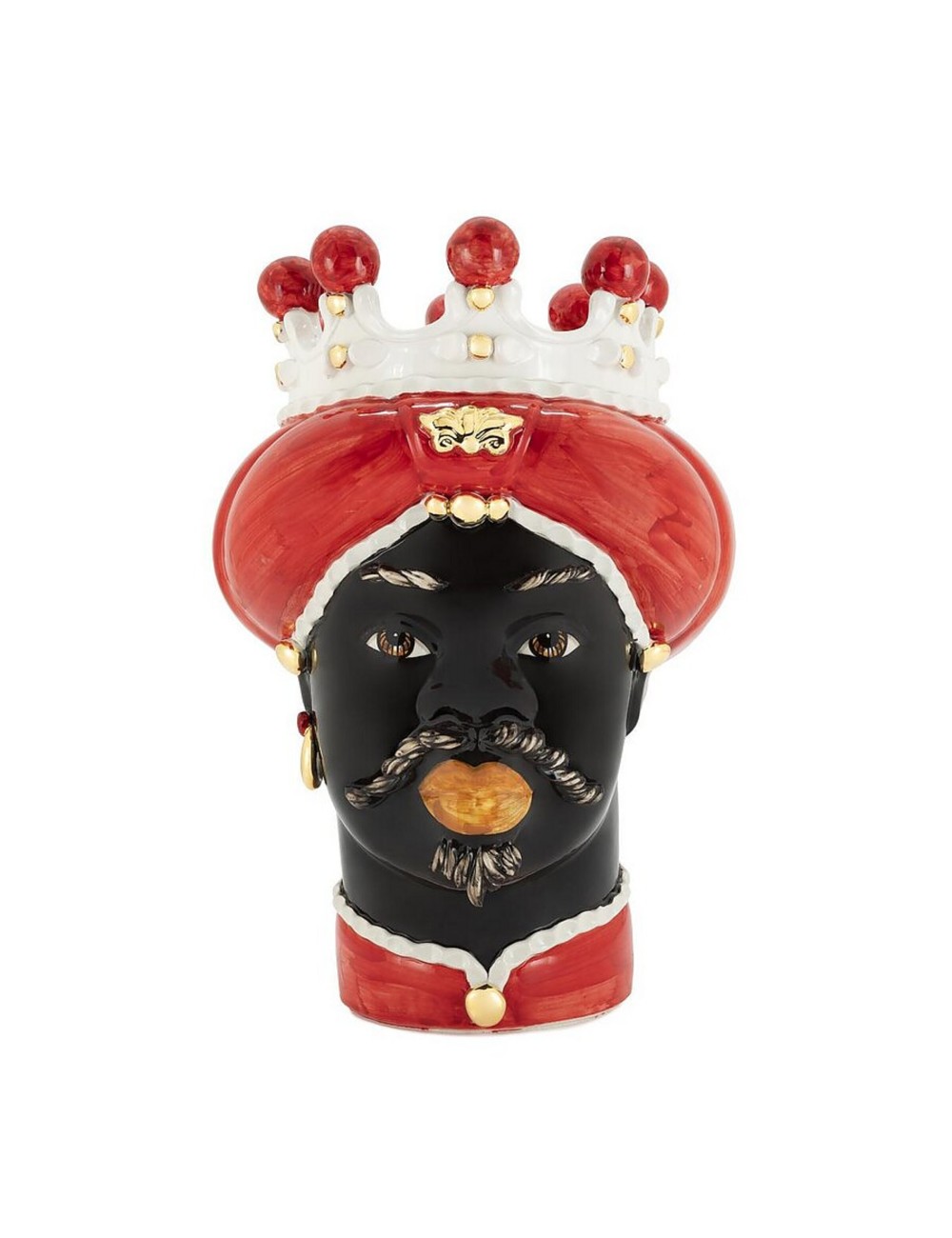 Sicilian traditional moor-head shaped ceramic vase, totally hand made and hand painted by the original artisanal producer from Caltagirone - Sicily, restyled and exclusively distributed by Abhika.