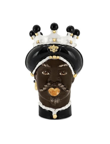 Sicilian traditional moor-head shaped ceramic vase, totally hand made and hand painted by the original artisanal producer from Caltagirone - Sicily, restyled and exclusively distributed by Abhika.