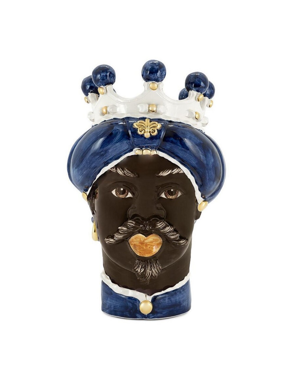 Sicilian traditional moor-head shaped ceramic vase, totally hand made and hand painted by the original artisanal producer from Caltagirone - Sicily, restyled and exclusively distributed by Abhika.