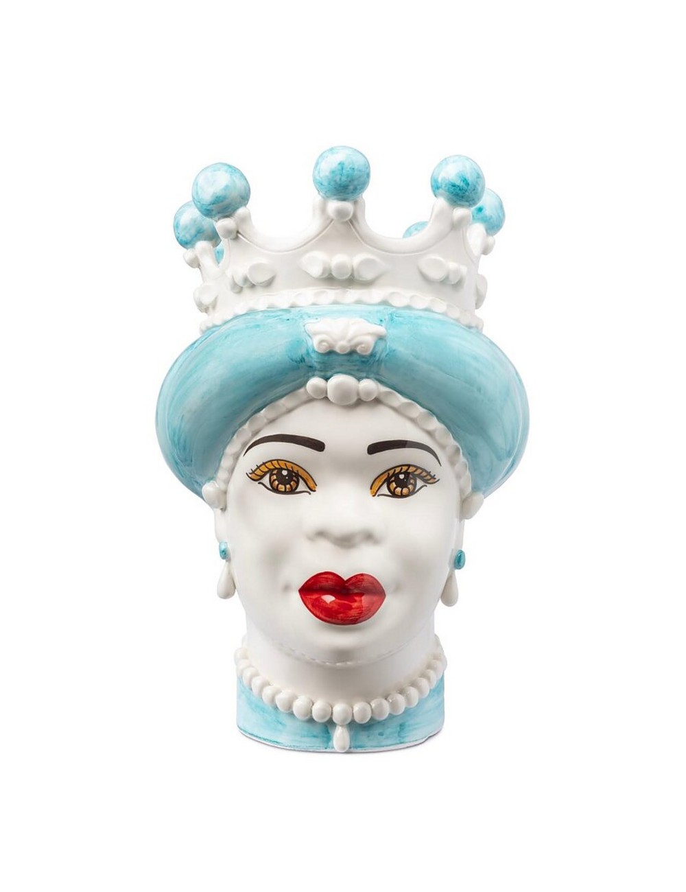 Sicilian traditional moor-head shaped ceramic vase, totally hand made and hand painted by the original artisanal producer from Caltagirone - Sicily, restyled and exclusively distributed by Abhika.