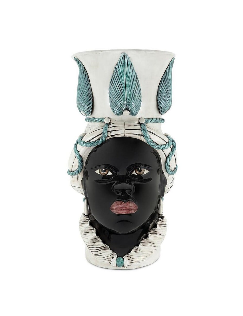 Sicilian traditional moor-head shaped ceramic vase, totally hand made and hand painted by the original artisanal producer from Caltagirone - Sicily, restyled and exclusively distributed by Abhika.