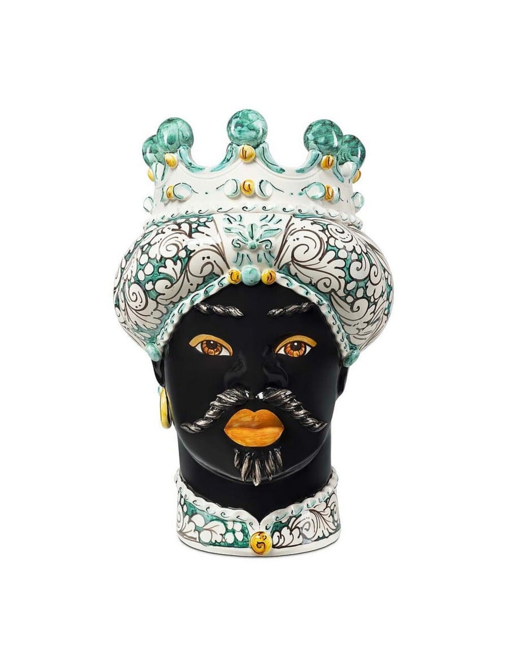 Sicilian traditional moor-head shaped ceramic vase, totally hand made and hand painted by the original artisanal producer from Caltagirone - Sicily, restyled and exclusively distributed by Abhika.