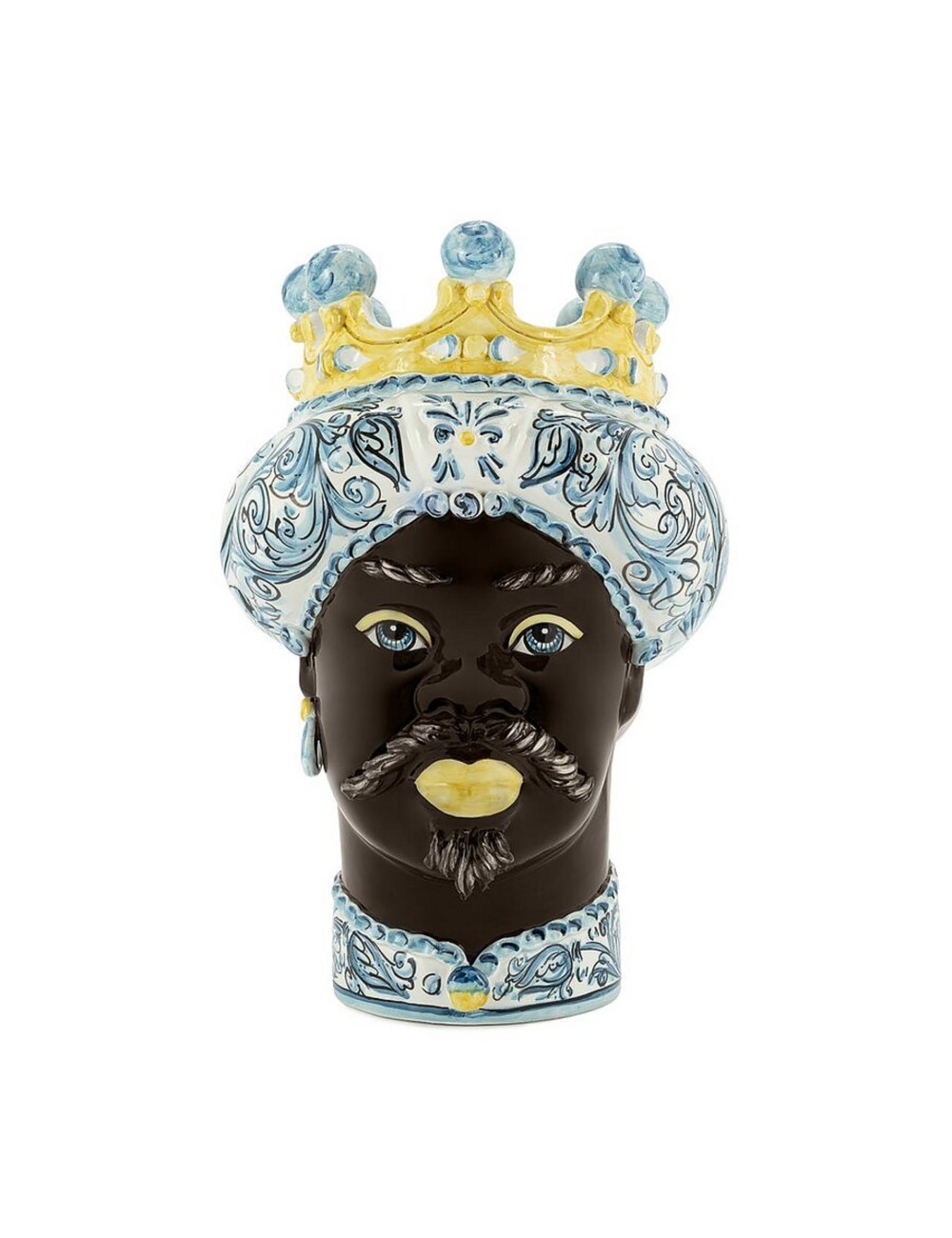 Sicilian traditional moor-head shaped ceramic vase, totally hand made and hand painted by the original artisanal producer from Caltagirone - Sicily, restyled and exclusively distributed by Abhika.