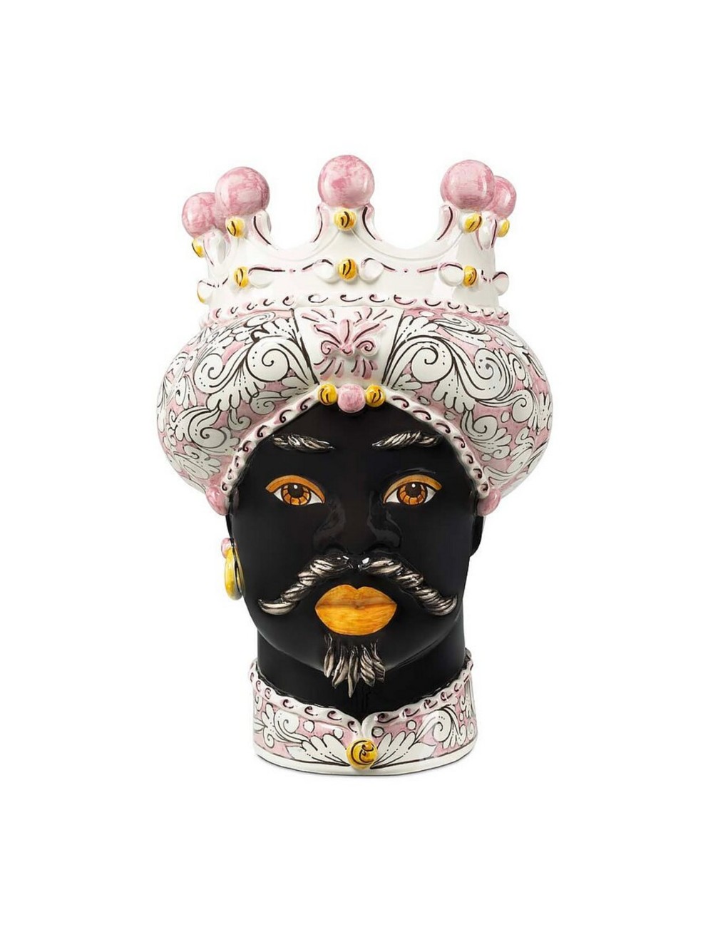 Sicilian traditional moor-head shaped ceramic vase, totally hand made and hand painted by the original artisanal producer from Caltagirone - Sicily, restyled and exclusively distributed by Abhika.