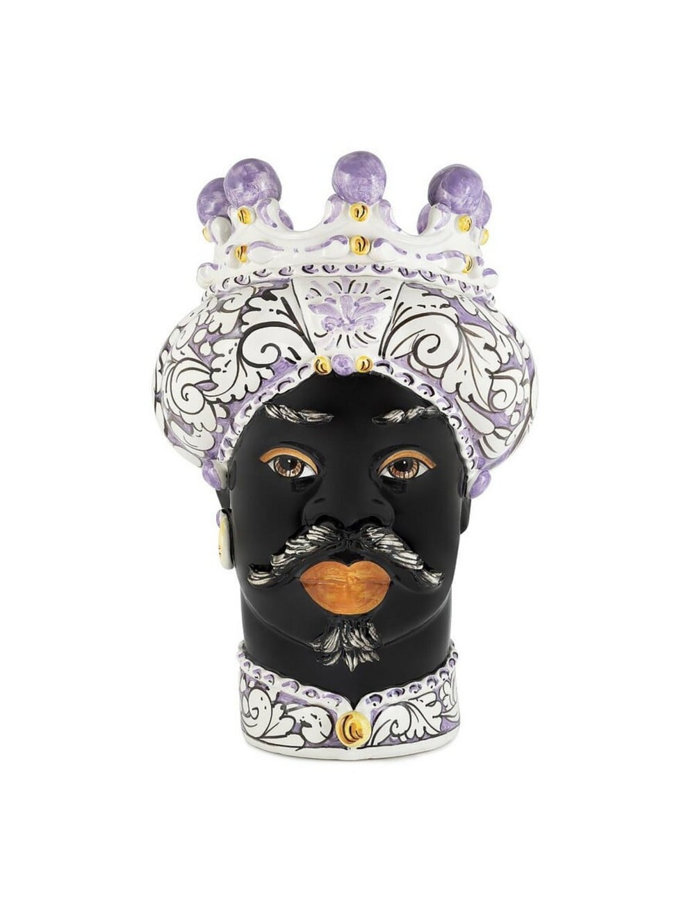 Sicilian traditional moor-head shaped ceramic vase, totally hand made and hand painted by the original artisanal producer from Caltagirone - Sicily, restyled and exclusively distributed by Abhika.