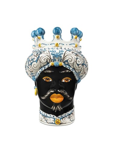 Sicilian traditional moor-head shaped ceramic vase, totally hand made and hand painted by the original artisanal producer from Caltagirone - Sicily, restyled and exclusively distributed by Abhika.