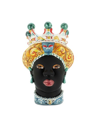 Sicilian traditional moor-head shaped ceramic vase, totally hand made and hand painted by the original artisanal producer from Caltagirone - Sicily, restyled and exclusively distributed by Abhika.