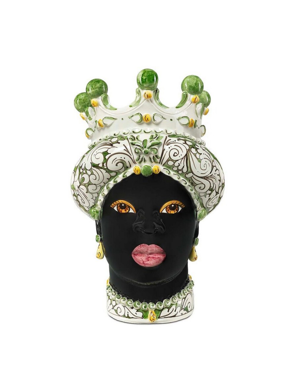Sicilian traditional moor-head shaped ceramic vase, totally hand made and hand painted by the original artisanal producer from Caltagirone - Sicily, restyled and exclusively distributed by Abhika.