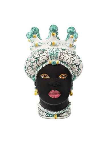 Sicilian traditional moor-head shaped ceramic vase, totally hand made and hand painted by the original artisanal producer from Caltagirone - Sicily, restyled and exclusively distributed by Abhika.