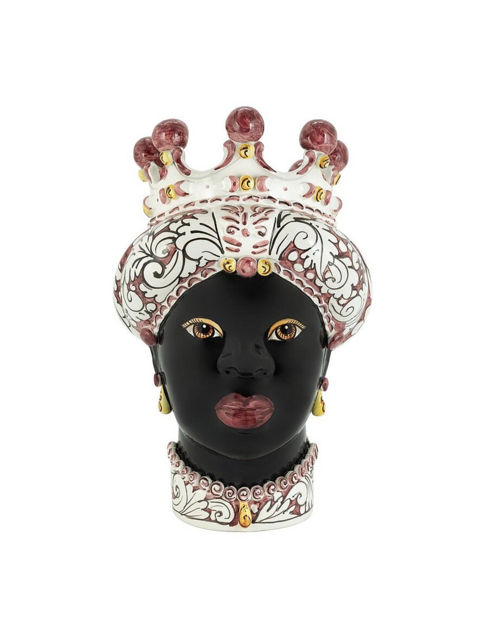 Sicilian traditional moor-head shaped ceramic vase, totally hand made and hand painted by the original artisanal producer from Caltagirone - Sicily, restyled and exclusively distributed by Abhika.