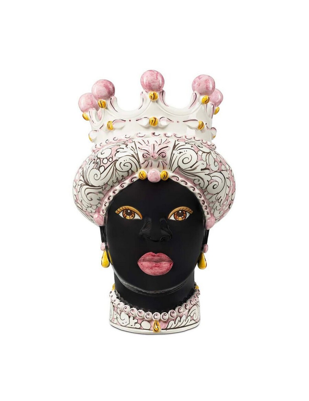 Sicilian traditional moor-head shaped ceramic vase, totally hand made and hand painted by the original artisanal producer from Caltagirone - Sicily, restyled and exclusively distributed by Abhika.