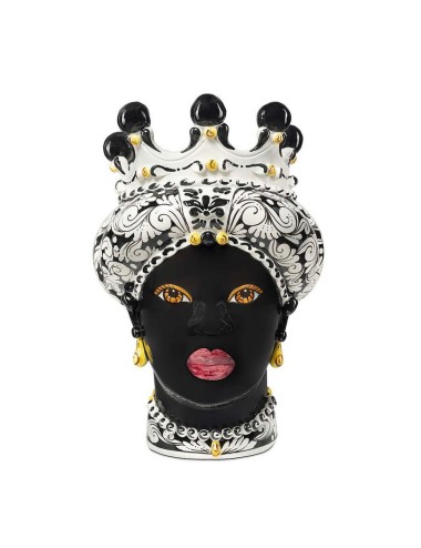 Sicilian traditional moor-head shaped ceramic vase, totally hand made and hand painted by the original artisanal producer from Caltagirone - Sicily, restyled and exclusively distributed by Abhika.