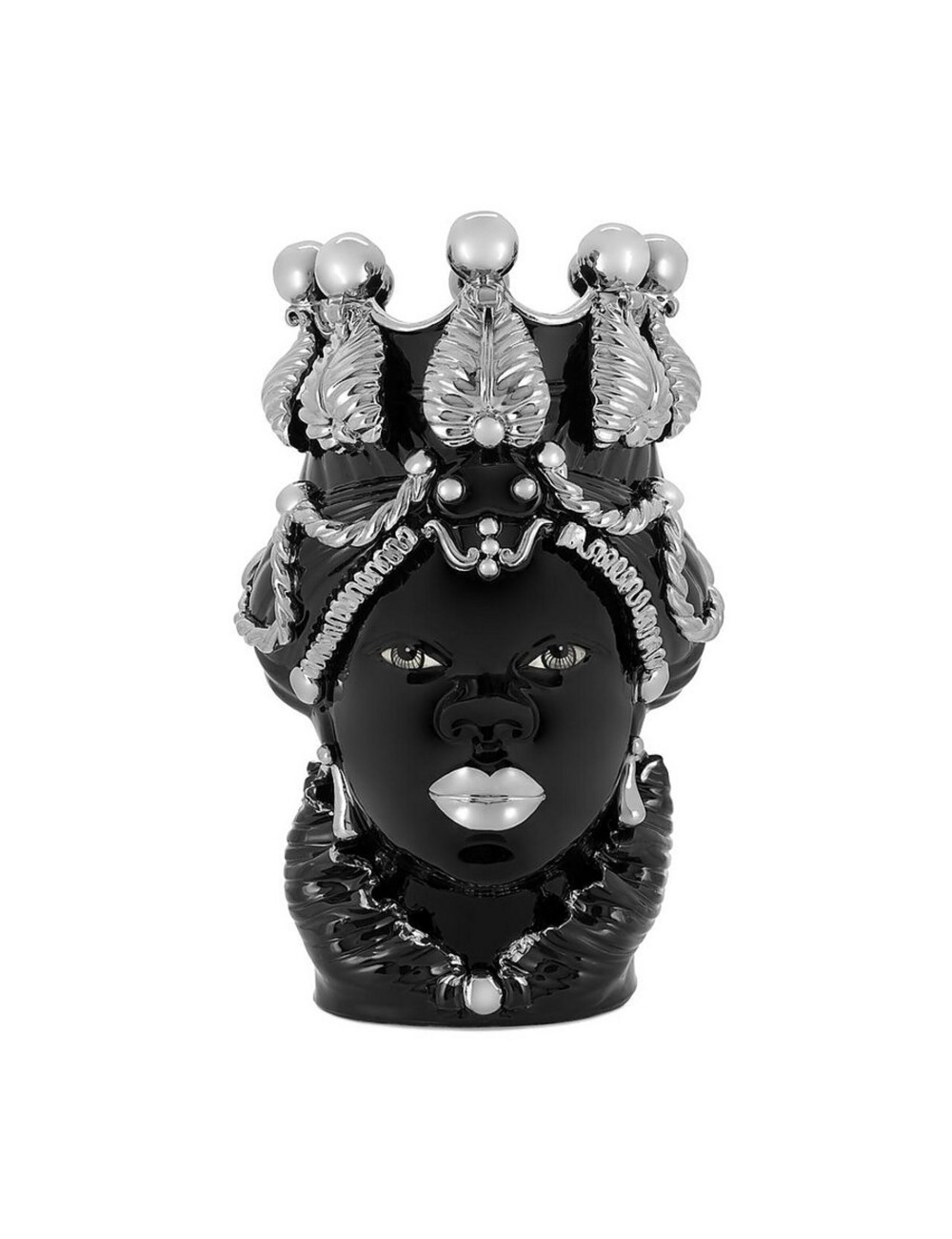 Sicilian traditional moor-head shaped ceramic vase, totally hand made and hand painted by the original artisanal producer from Caltagirone - Sicily, restyled and exclusively distributed by Abhika.