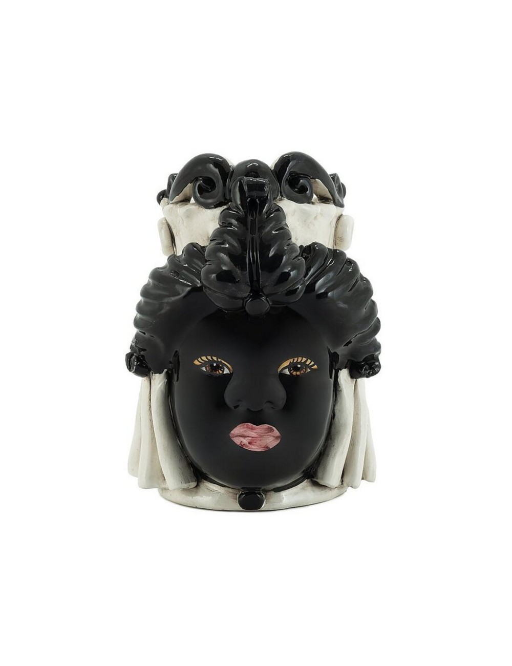 Sicilian traditional moor-head shaped ceramic vase, totally hand made and hand painted by the original artisanal producer from Caltagirone - Sicily, restyled and exclusively distributed by Abhika.