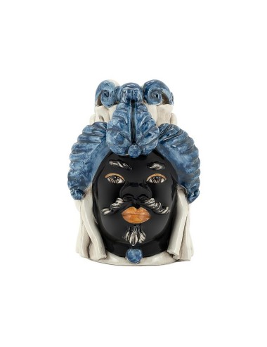 Sicilian traditional moor-head shaped ceramic vase, totally hand made and hand painted by the original artisanal producer from Caltagirone - Sicily, restyled and exclusively distributed by Abhika.