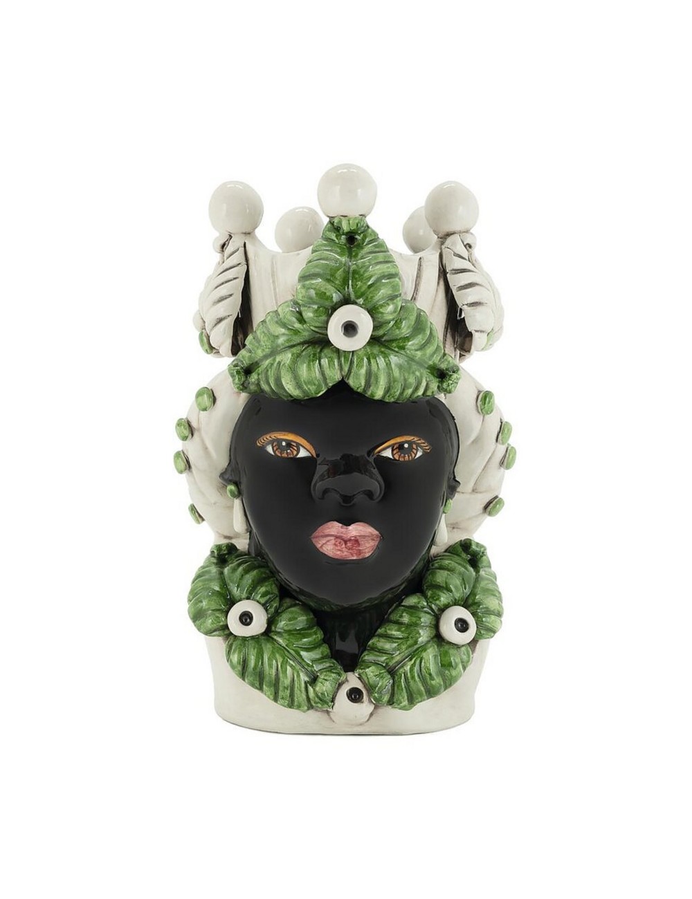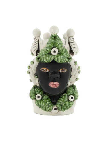 Sicilian traditional moor-head shaped ceramic vase, totally hand made and hand painted by the original artisanal producer from Caltagirone - Sicily, restyled and exclusively distributed by Abhika.
