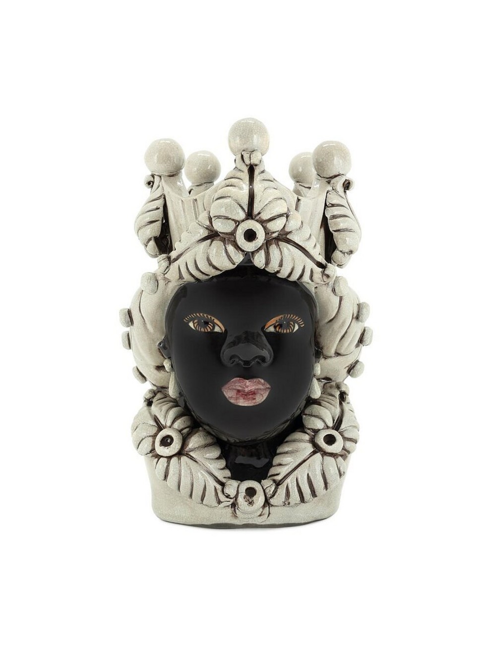 Sicilian traditional moor-head shaped ceramic vase, totally hand made and hand painted by the original artisanal producer from Caltagirone - Sicily, restyled and exclusively distributed by Abhika.