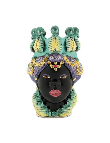 Sicilian traditional moor-head shaped ceramic vase, totally hand made and hand painted by the original artisanal producer from Caltagirone - Sicily, restyled and exclusively distributed by Abhika.