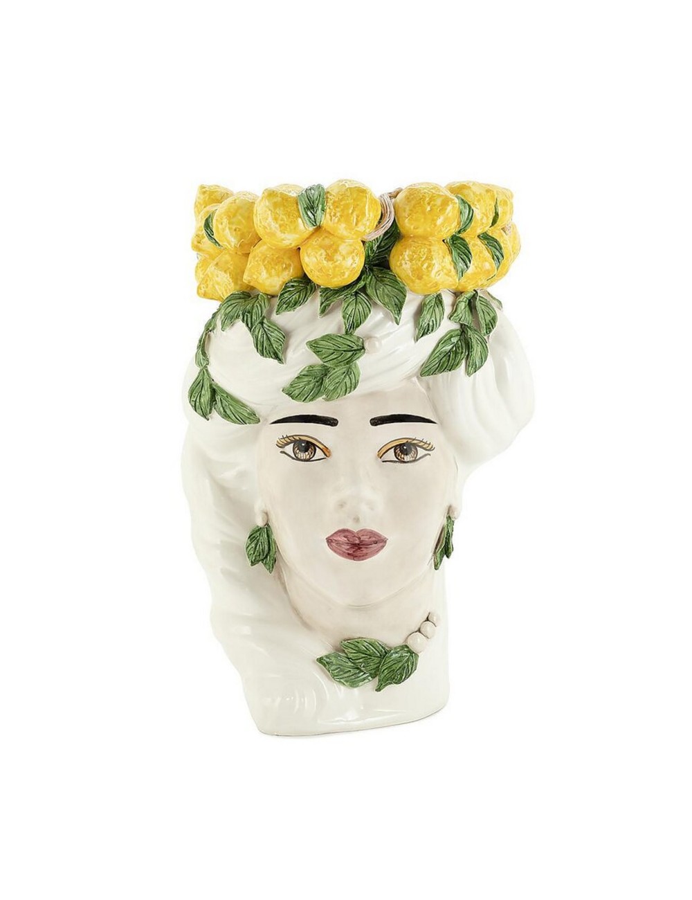 Sicilian traditional moor-head shaped ceramic vase, totally hand made and hand painted by the original artisanal producer from Caltagirone - Sicily, restyled and exclusively distributed by Abhika.