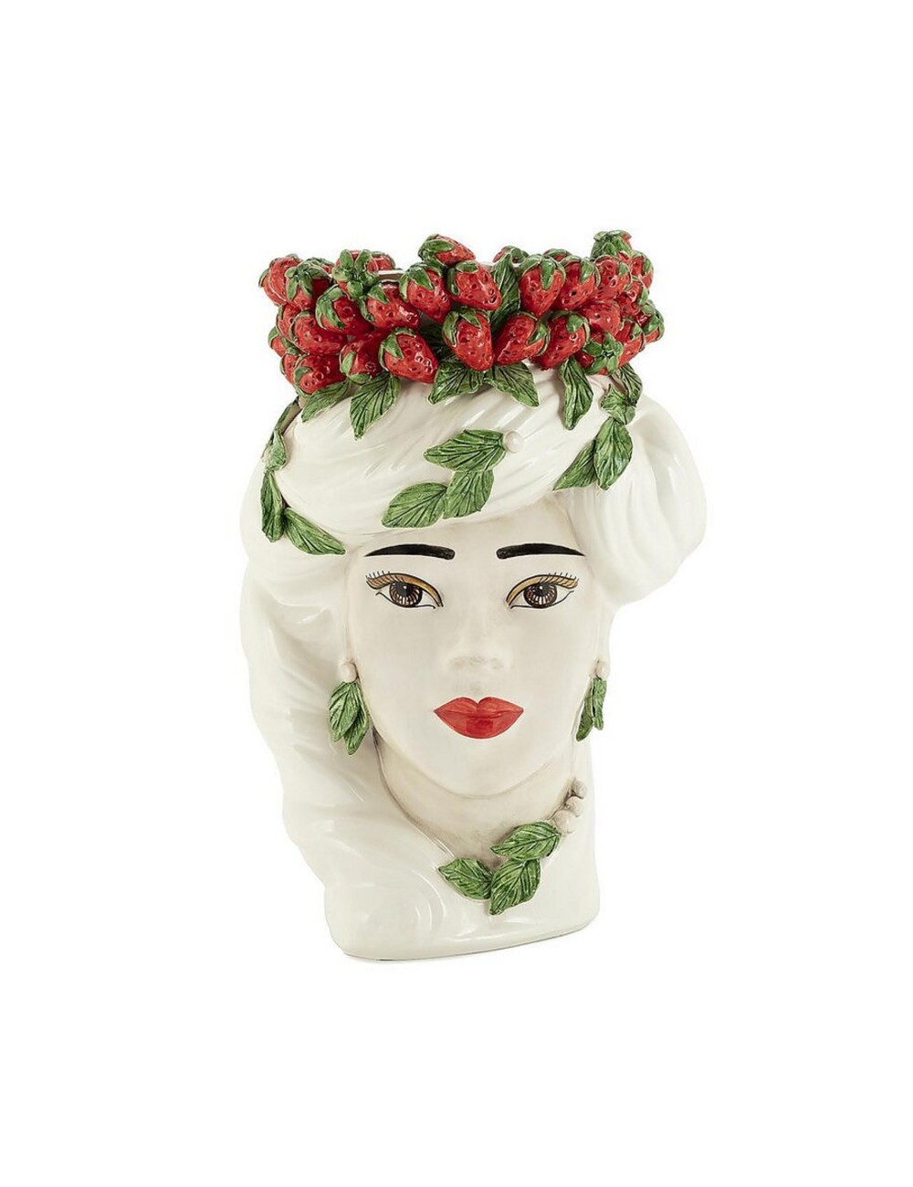 Sicilian traditional moor-head shaped ceramic vase, totally hand made and hand painted by the original artisanal producer from Caltagirone - Sicily, restyled and exclusively distributed by Abhika.