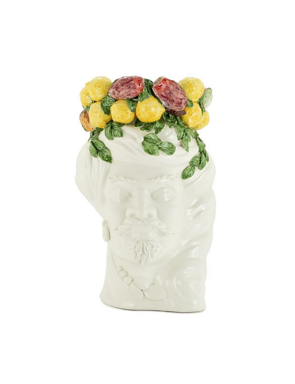 Sicilian traditional moor-head shaped ceramic vase, totally hand made and hand painted by the original artisanal producer from Caltagirone - Sicily, restyled and exclusively distributed by Abhika.