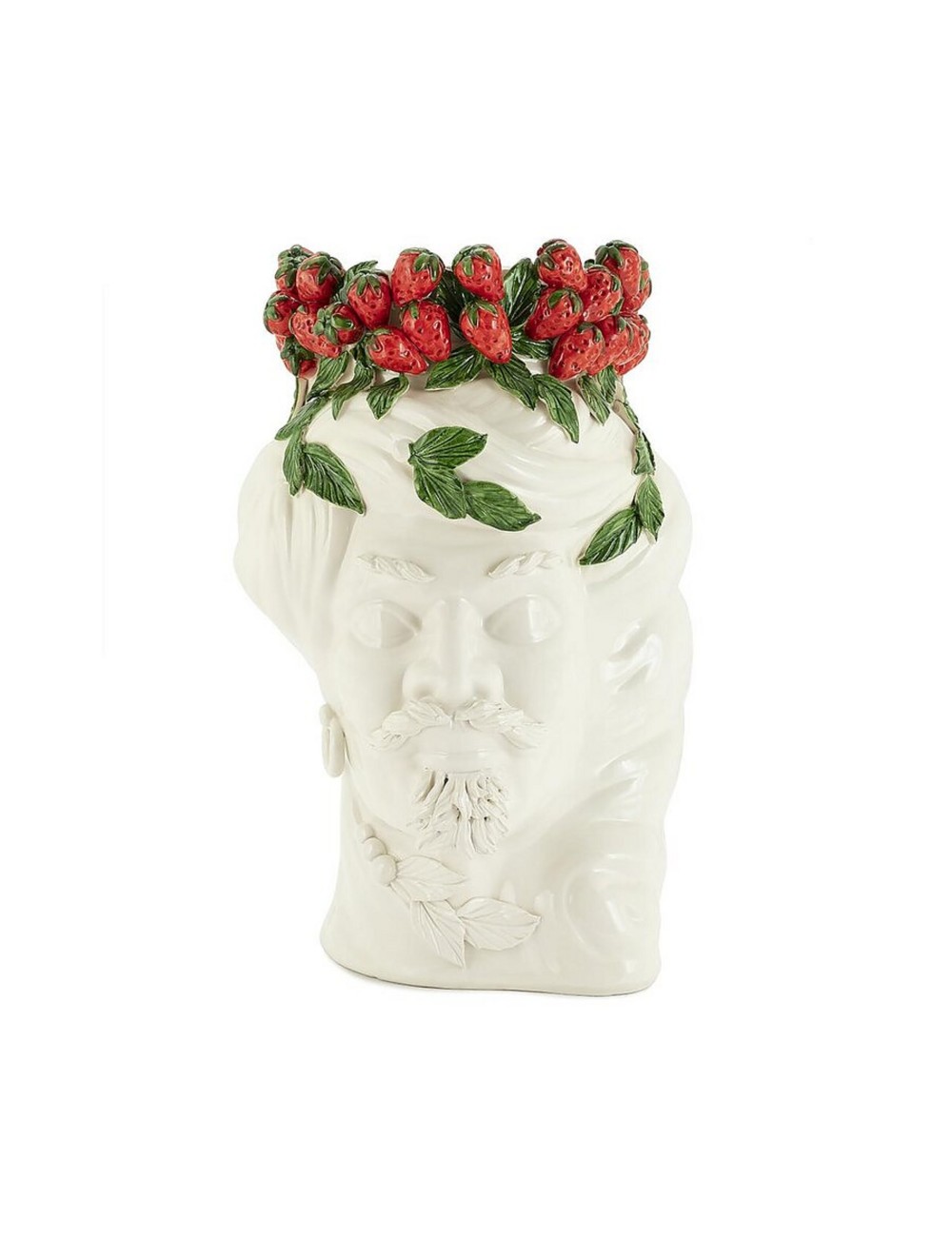 Sicilian traditional moor-head shaped ceramic vase, totally hand made and hand painted by the original artisanal producer from Caltagirone - Sicily, restyled and exclusively distributed by Abhika.