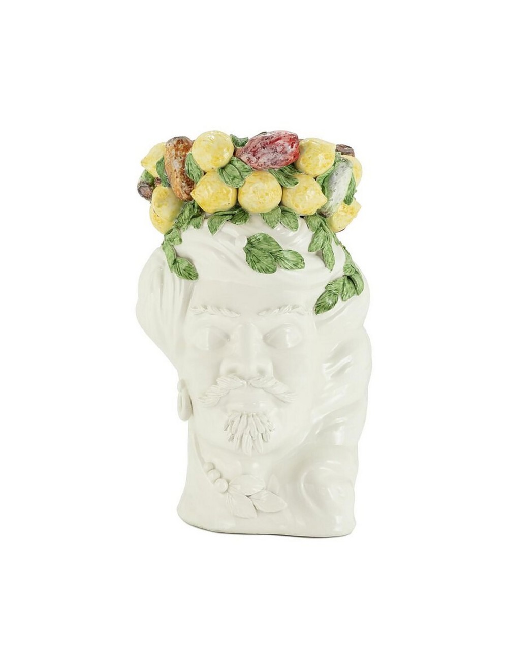 Sicilian traditional moor-head shaped ceramic vase, totally hand made and hand painted by the original artisanal producer from Caltagirone - Sicily, restyled and exclusively distributed by Abhika.