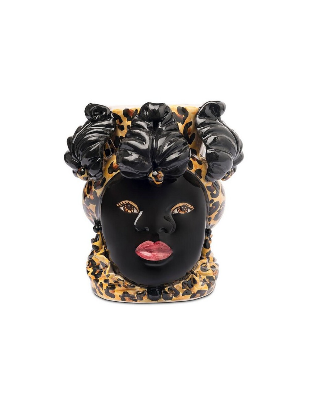 Sicilian traditional moor-head shaped ceramic vase, totally hand made and hand painted by the original artisanal producer from Caltagirone - Sicily, restyled and exclusively distributed by Abhika.