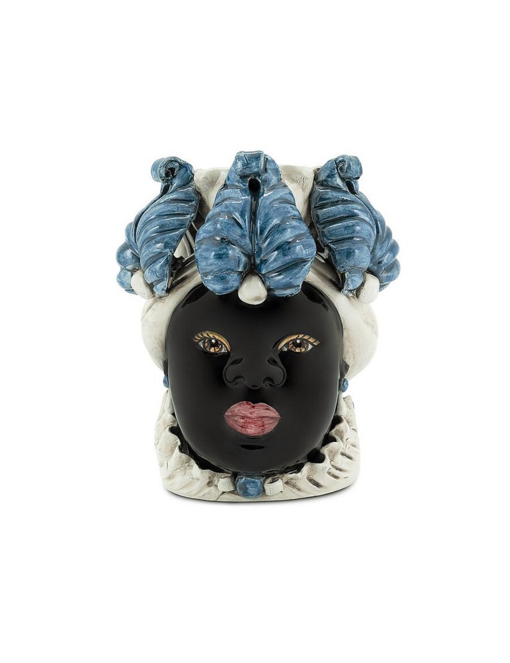Sicilian traditional moor-head shaped ceramic vase, totally hand made and hand painted by the original artisanal producer from Caltagirone - Sicily, restyled and exclusively distributed by Abhika.