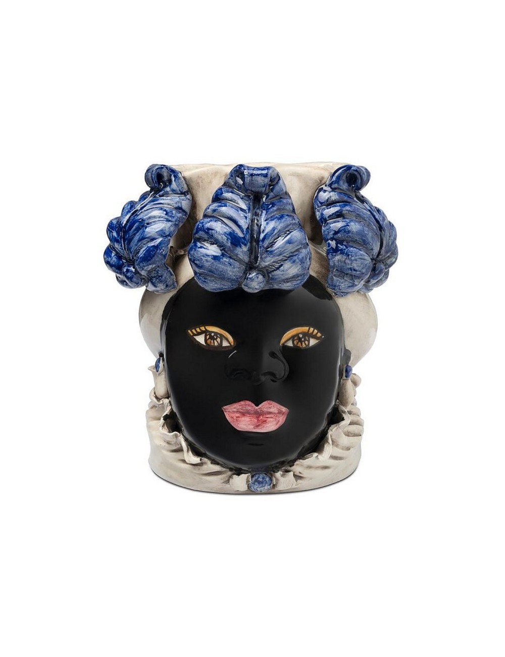 Sicilian traditional moor-head shaped ceramic vase, totally hand made and hand painted by the original artisanal producer from Caltagirone - Sicily, restyled and exclusively distributed by Abhika.