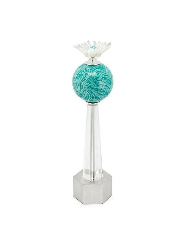 Introducing the Obelisque Krizia that seamlessly blends elegance with artistry. This luxurious item features a glazed porcelain spherical centerpiece available in various captivating colors, adding a touch of personalized charm to any space.