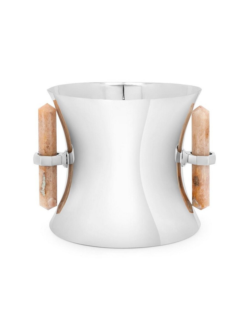 Metal wine cooler with natural stone handles.
