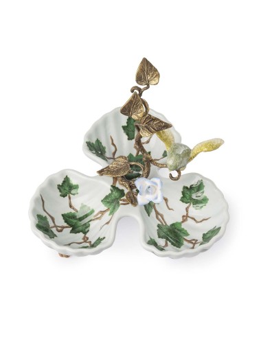 Hand painted glazed porcelain buffet with hand painted decor and details handmade in bronze.