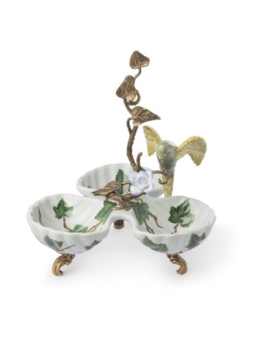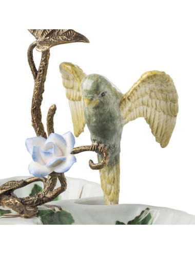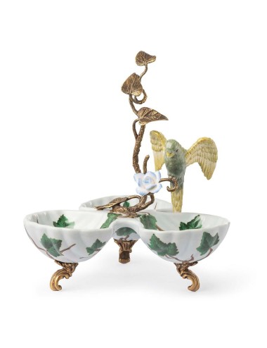 Glazed porcelain buffet with hand painted decor and bronze details.