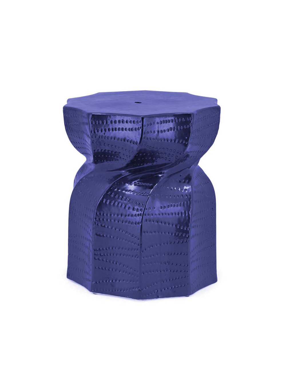Contemporary piece made in ceramic, designed in twisted hourglass shape featuring detailed hammered pattern. The modern stool in shiny gold finish, that instantly adds a touch of glamour and exclusivity to the environment in which it is inserted. The smooth surface reflects light and the high quality of workmanship making it not only a practical piece of furniture, but also a unique interior decoration.