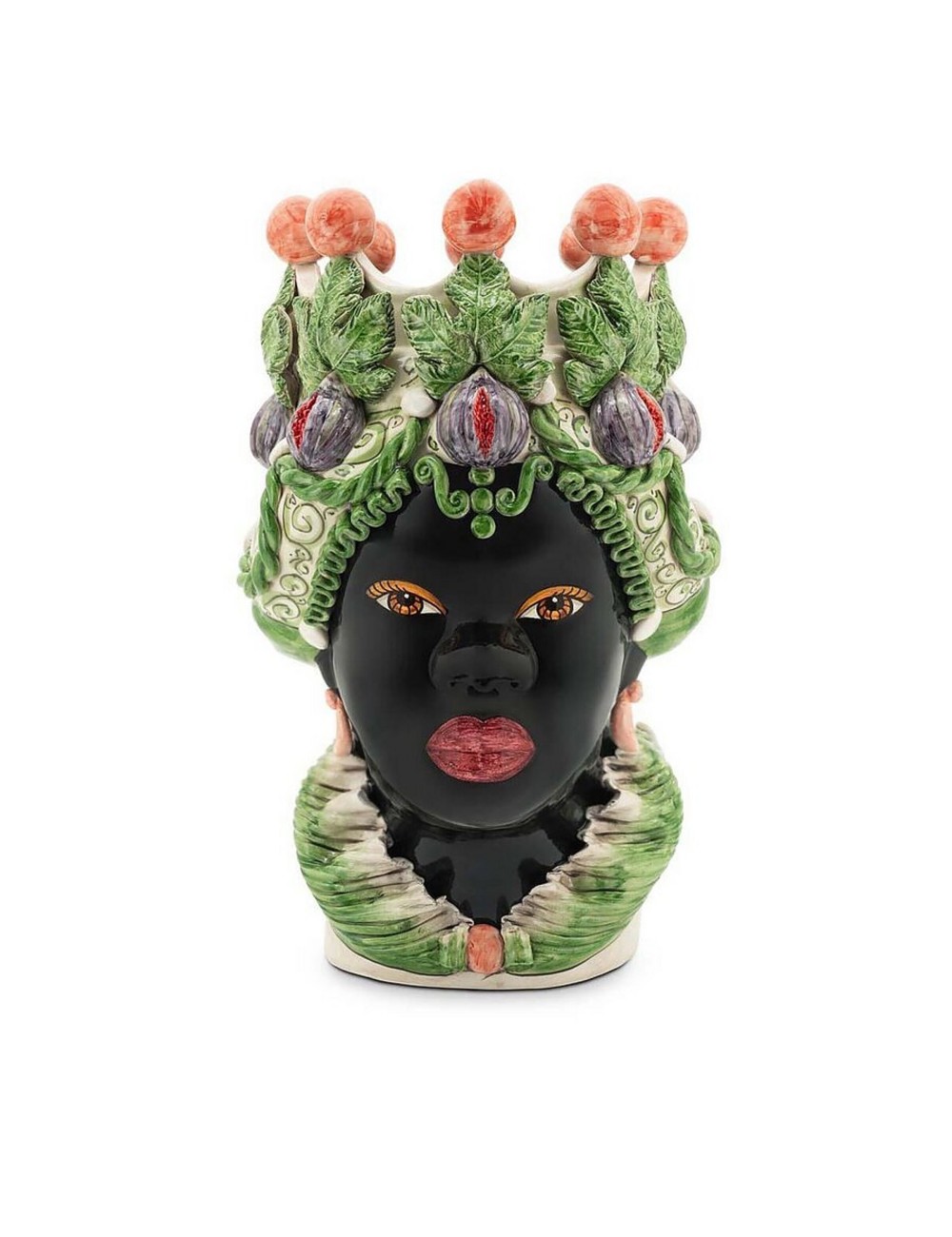 Sicilian traditional moor-head shaped ceramic vase, totally hand made and hand painted by the original artisanal producer from Caltagirone - Sicily, restyled and exclusively distributed by Abhika.