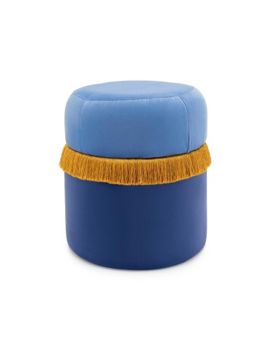 Made in Italy Jellybean pouf is absolutely unique by revealing, in the grandeur of its round lines, an intriguing play between the softness of duo color velvet textures, and flirty dynamic movement of contrasting tone silk fringes.