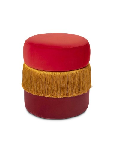 Made in Italy Jellybean pouf is absolutely unique by revealing, in the grandeur of its round lines, an intriguing play between the softness of duo color velvet textures, and flirty dynamic movement of contrasting tone silk fringes.