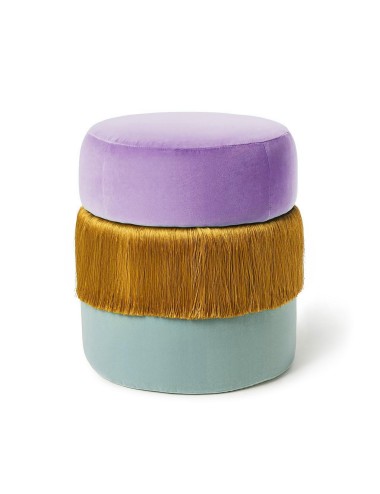Made in Italy Jellybean pouf is absolutely unique by revealing, in the grandeur of its round lines, an intriguing play between the softness of duo color velvet textures, and flirty dynamic movement of contrasting tone silk fringes.