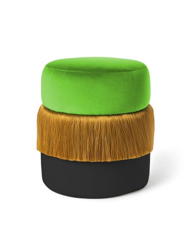 Made in Italy Jellybean pouf is absolutely unique by revealing, in the grandeur of its round lines, an intriguing play between the softness of duo color velvet textures, and flirty dynamic movement of contrasting tone silk fringes.
