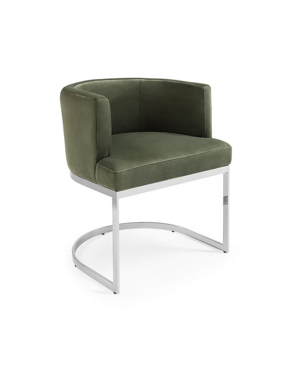 Chromium plated metal chair with upholstered seat covered with velvet.