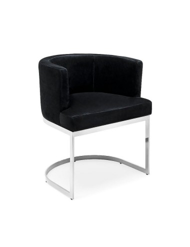 Chromium plated metal chair with upholstered seat covered with velvet.