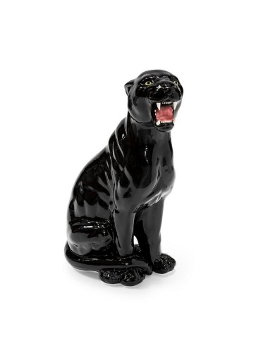 Hand painted ceramic sculpture representing a roaring leopard.