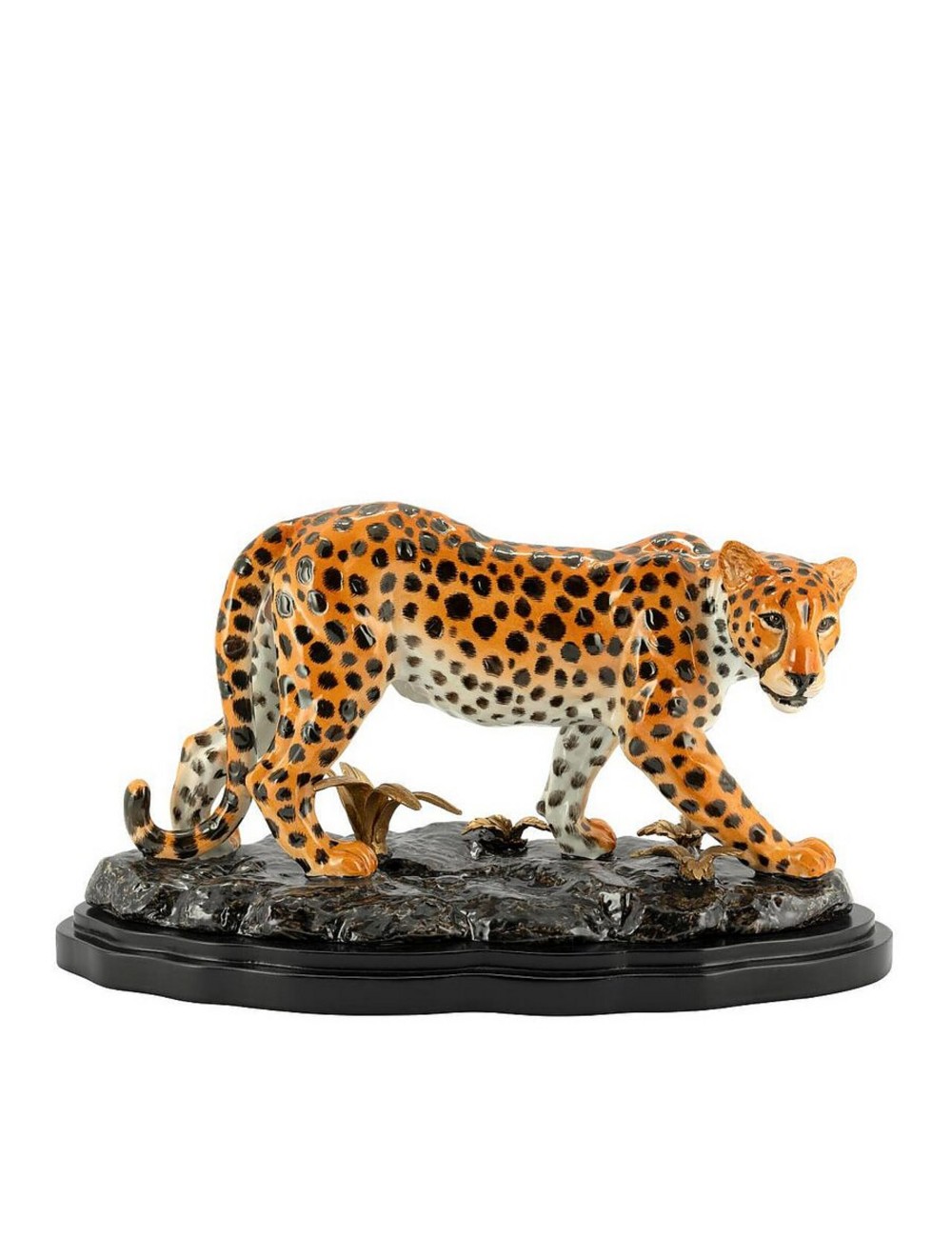 Original sculpture representing a leopard in porcelain, all details are hand painted.