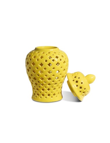 The vase Ming Cross made of ceramic and is entirely hand-pierced, its surface reflects light subtly, creating a play of shadows that adds depth and character to your room.